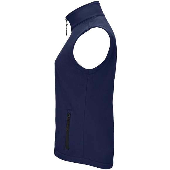 Softshell femme sans manches. 96% polyester - 4% élasthanne. 2 couches. Intérieur polaire 100% polyester 2 poches zippées. Grammage : 280g/m²
